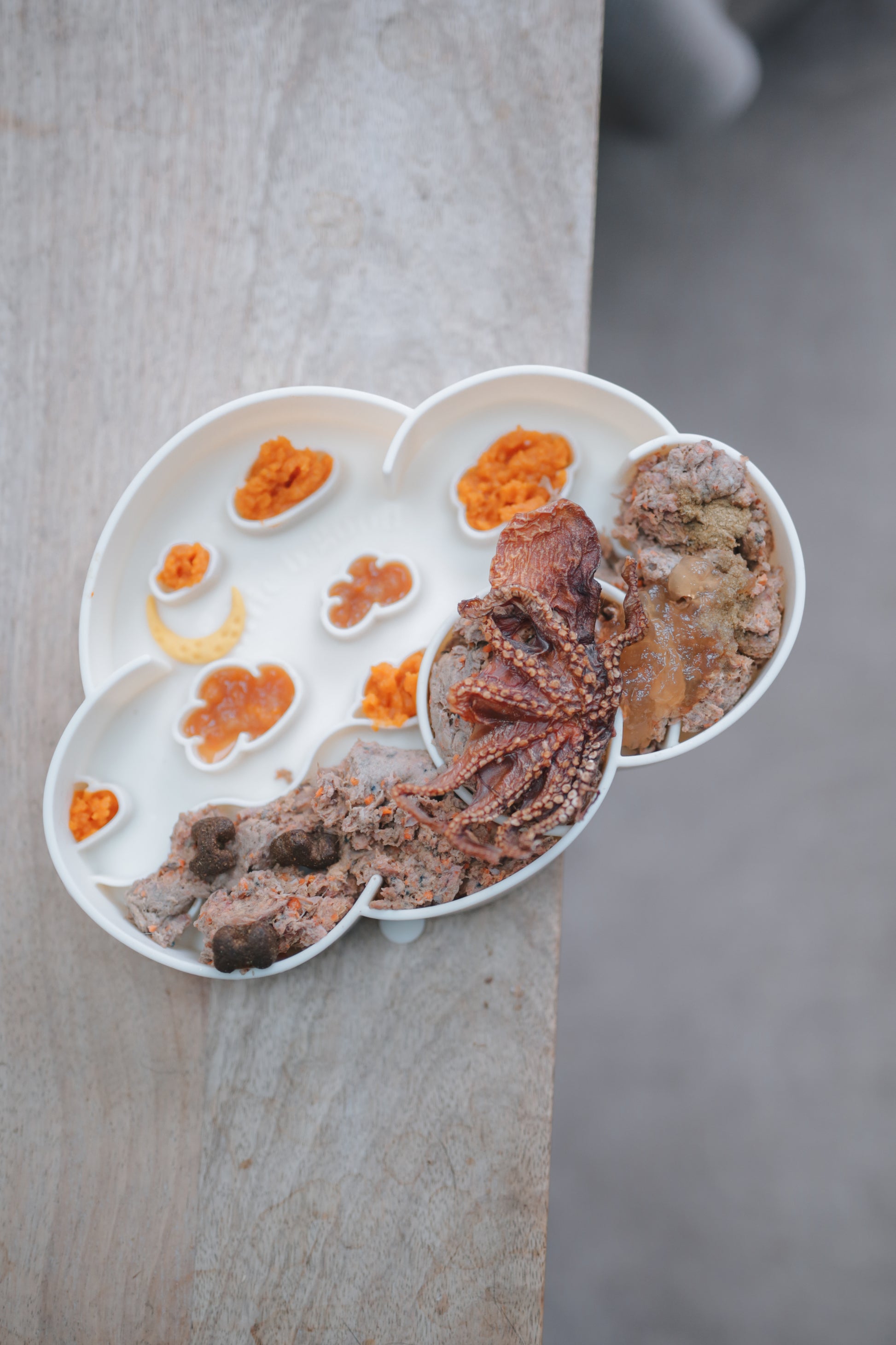 Holding up to 4 cups of food, the Cloud Slow Feeder is perfect for the large or small pups as the diameter of the cloud is the same as the original zoomies slow feeder from Ollie B. Good. It also includes a variety of groove heights so this is still a suitable feeder for our flat-faced furiends!