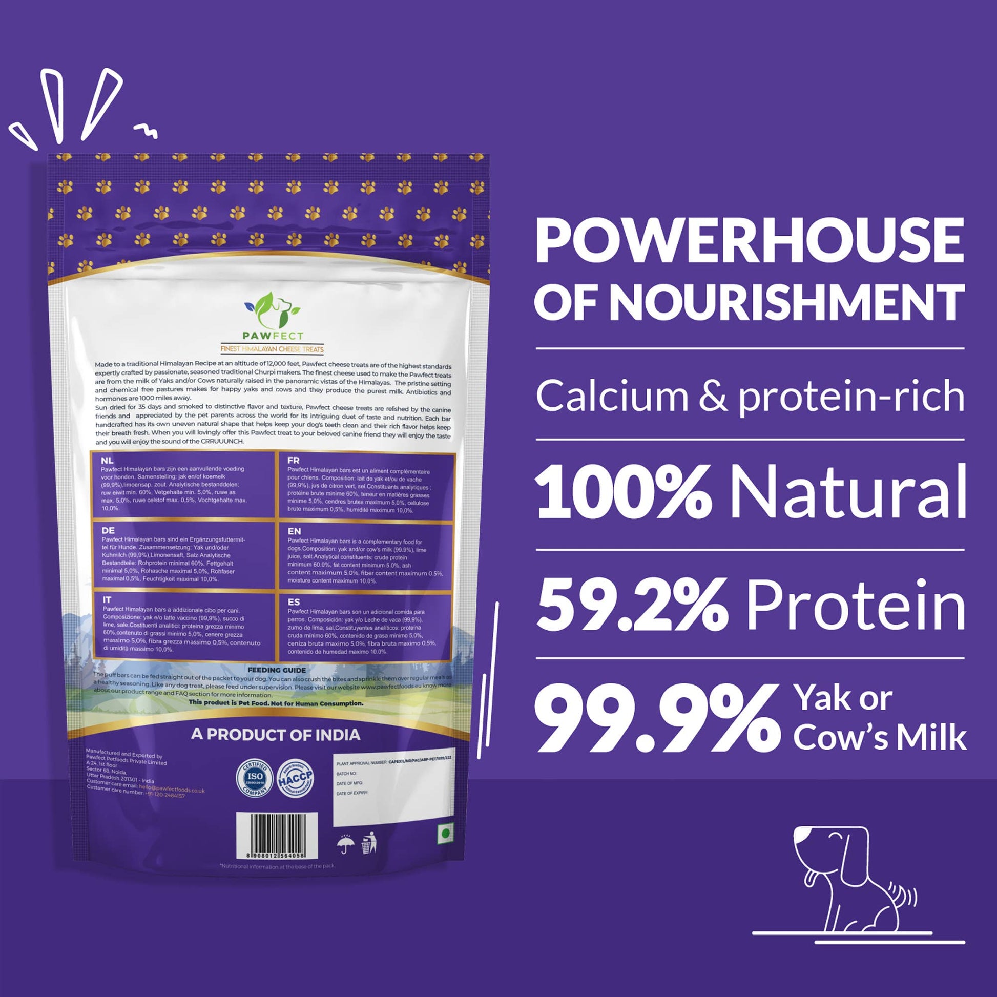 100% natural, grain-free Himalayan crunchy treats for dogs made using an age-old Himalayan recipe at altitudes above 15,000 ft, these crunchy treats are handcrafted from milk sourced from free-roaming, grass-fed cows in the untouched pastures of the Himalayas. A wholesome, satisfying reward for dogs of all breeds and sizes.